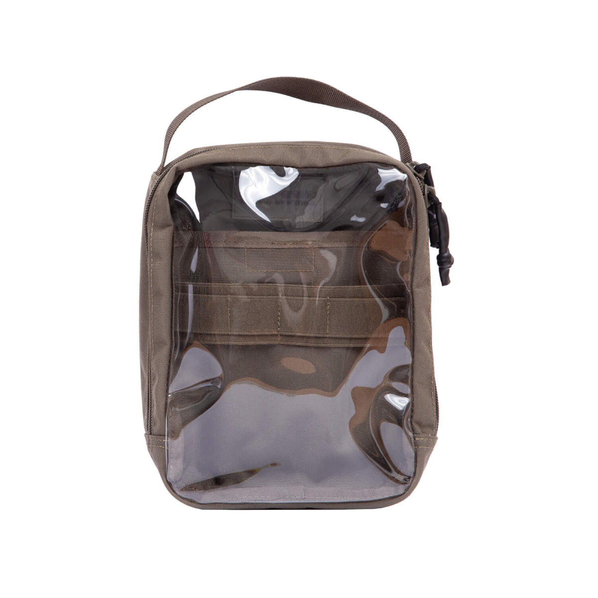 הדגם השקוף כולל גב מבוסס ניילון שקוף, המאפשר לראות את תכולת הפאוץ' ללא פתיחה – יתרון משמעותי כאשר נדרש לאתר ציוד במהירות, במיוחד בציוד רפואי או ציוד עבודה.
