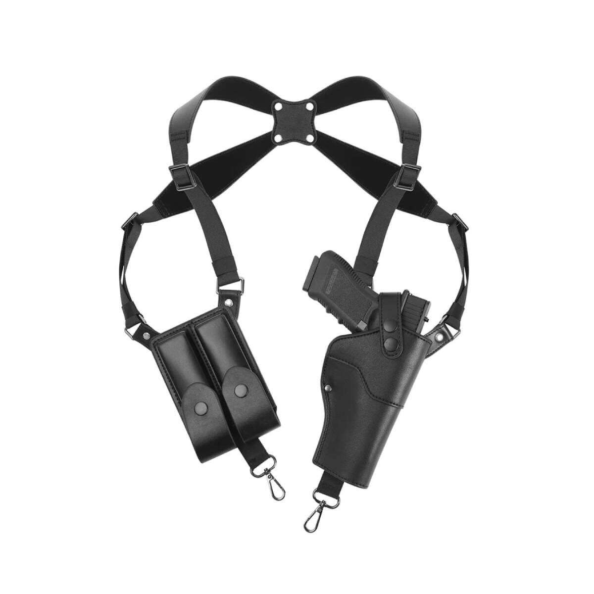 נרתיק כתף מוסלק לנשק מיועד לנשיאה סמויה באמצעות מערכת רתמות כתפיים מתכווננת.
