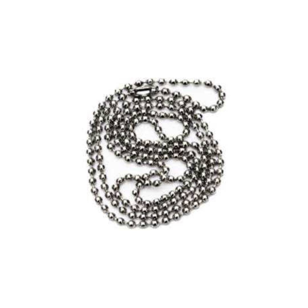 שרשרת מתכת תקנית לדיסקית. עשויה פלדת אל־חלד (Stainless Steel). עמידה בפני קורוזיה, מים ולחות. קלת משקל ונוחה לענידה ממושכת. מתאימה לדיסקיות זיהוי, תגיות שם ואביזרי שטח. אורך תקני עם סגירה מאובטחת. עמידה בשימוש יומיומי ובתנאי שטח.
