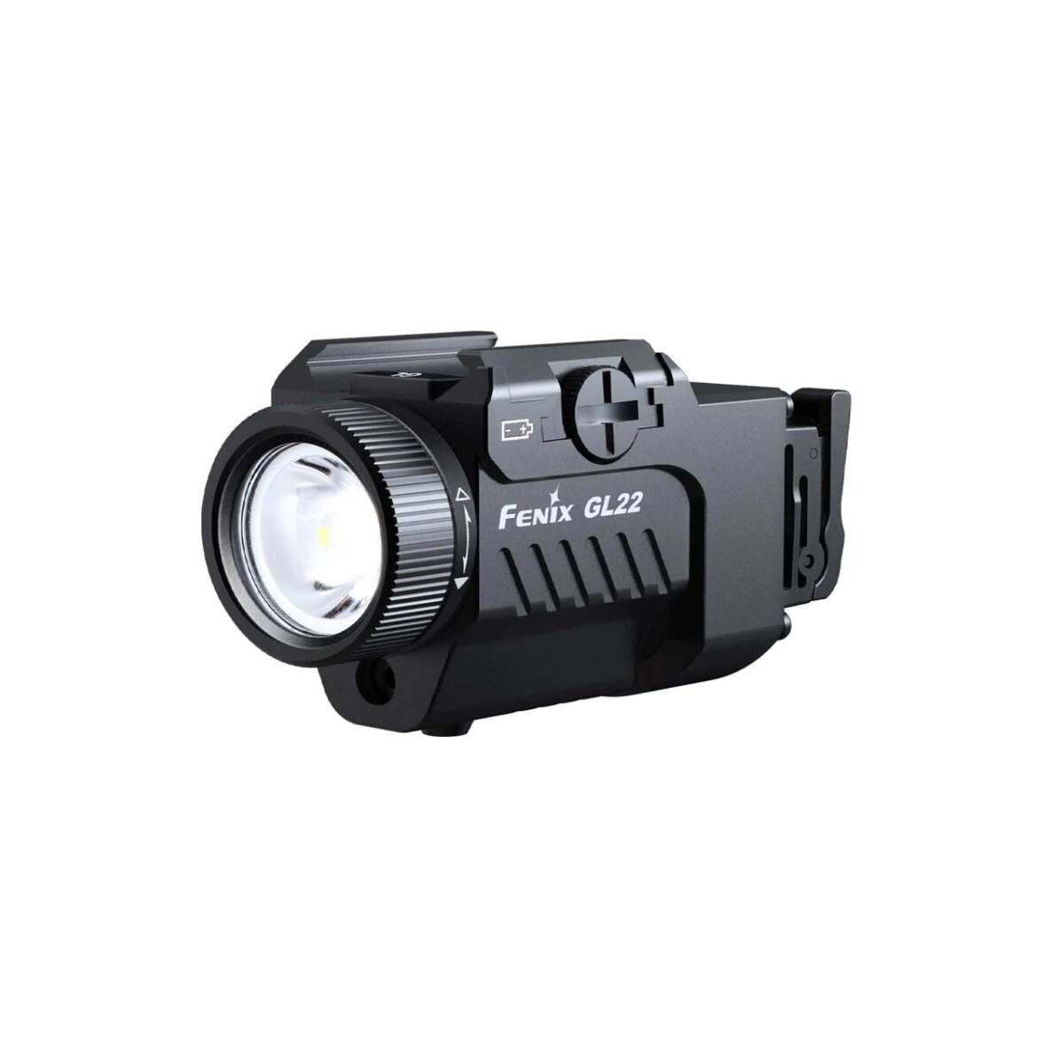 Fenix GL22 Tactical Weapon Light. עוצמת הארה: 750 לומן, טווח עד 180 מטר. מתגים: מתג כפול לשימוש ימין ושמאל. תפקוד אור: אור לבן בלבד, לייזר אדום בלבד, או שניהם יחד. מצב Strobe: להטלת בלבול על היריב. חיבור לנשק: מותאם לאקדחי Glock ולמסילות Picatinny, כולל חלק מהקומפקטים. עמידות: עמיד בפני זעזועים, דירוג IP66 לאטימות בפני מים ואבק. שימוש: מתאים לכל פעילות טקטית ומבצעית.
