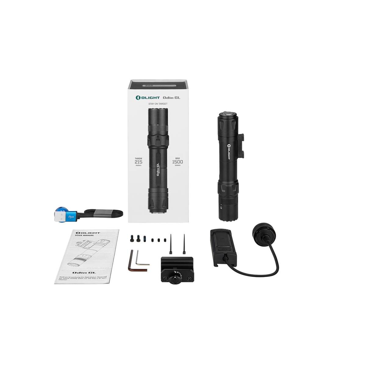 פנס Odin GL מספק עוצמת אור של 1,500 לומן עם טווח הארה של 215 מטר. קרן לייזר ירוקה (GL) באורך מוקד של 20 מטר, נראית ביום ובלילה. שני מצבי פעולה: אור לבן בלבד, קרן GL בלבד, או שילוב שניהם. סיבוב טבעת הבורר בראש הפנס מאפשר מעבר מהיר בין המצבים. כולל סוללת 5000mAh 21700 נטענת בהתאמה אישית וטעינה מגנטית USB. מצויד במחוון סוללת רטט ומתג זנב מתכתי שקט. תושבת מסילה Picatinny להתקנה יציבה ומתג שלט מגנטי נעילה להפעלה רגעית או קבועה. מבנה מאלומיניום בדרגת מטוס, עמידות נפילה עד 1.5 מטר ודירוג מים IPX4.