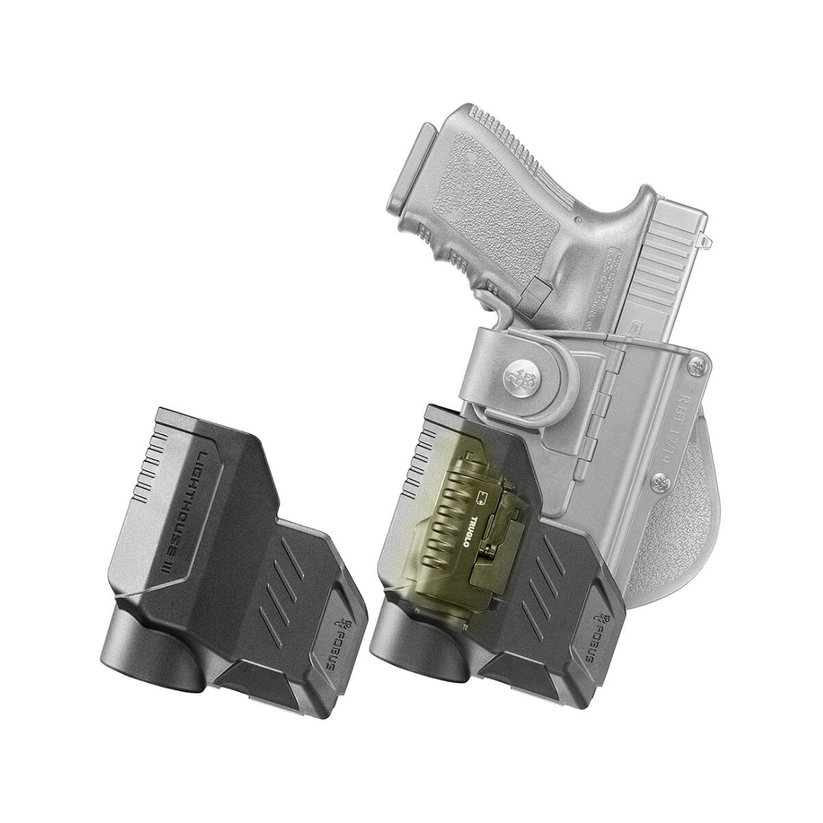 נרתיק טקטי RBT19 RT מספק פתרון מקצועי לנשיאת אקדח עם פנס או לייזר.