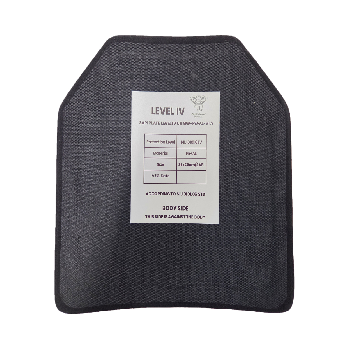 הפלטה עומדת בתקן NIJ 0101.06 Level IV.