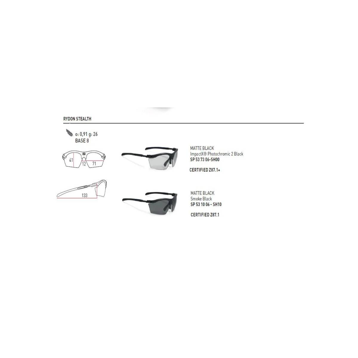 דגם RYDON מסדרת STEALTH בצבע מסגרת Black Matte Stealth, מצויד בעדשות ImpactX 2 Black בתקן ANSI Z87.1. עדשות אלו שקופות במצב רגיל ומתכהות לגוון אפור כהה בעת חשיפה לקרינת UV.