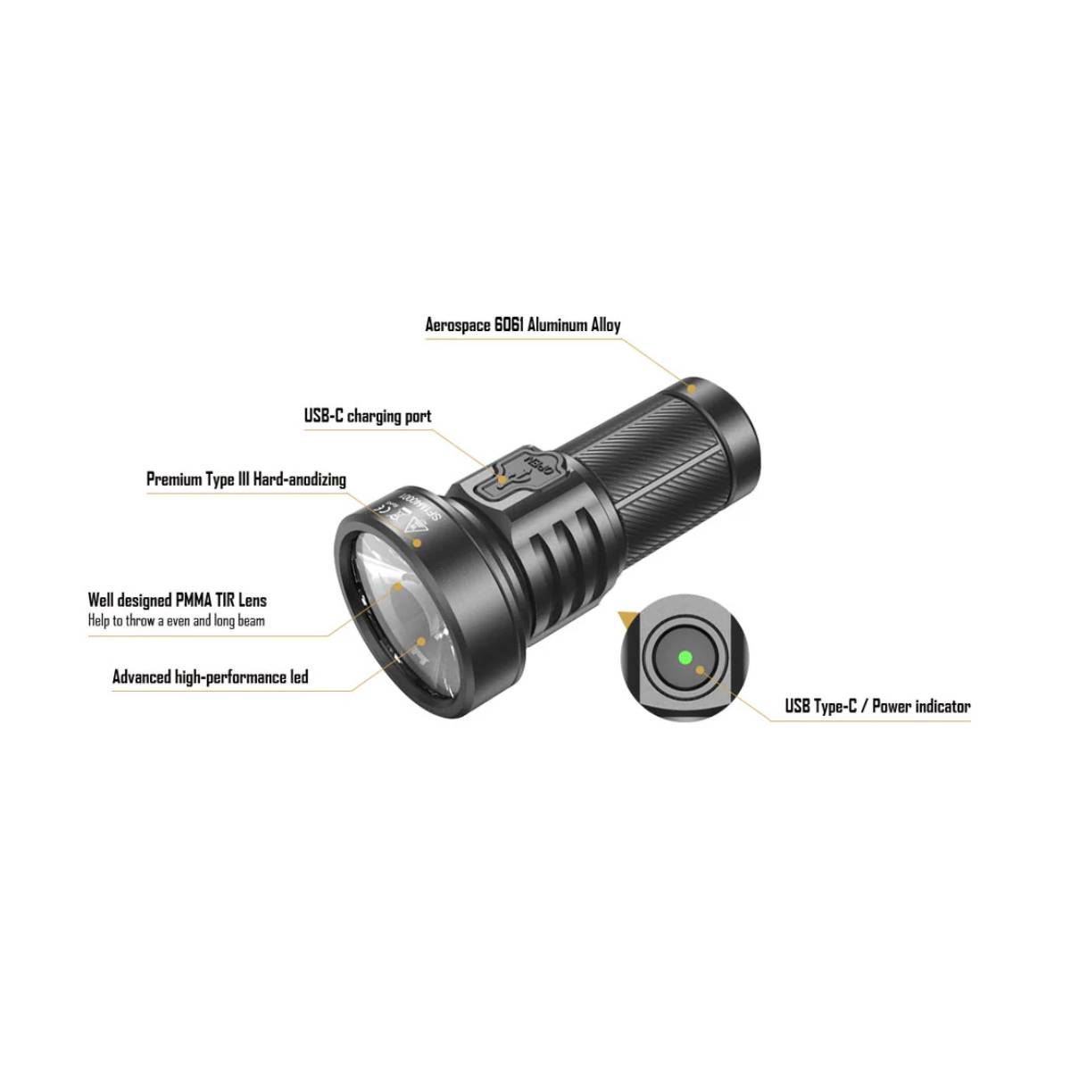 פנס יד קומפקטי של חברת SPERAS המספק 1320 לומן ועוצמה של 123,000 קנדלה, עם טווח קרן של עד 701 מטר. אידיאלי לשימוש טקטי, חיפושים, הצלה ופעילויות חוץ מגוונות.