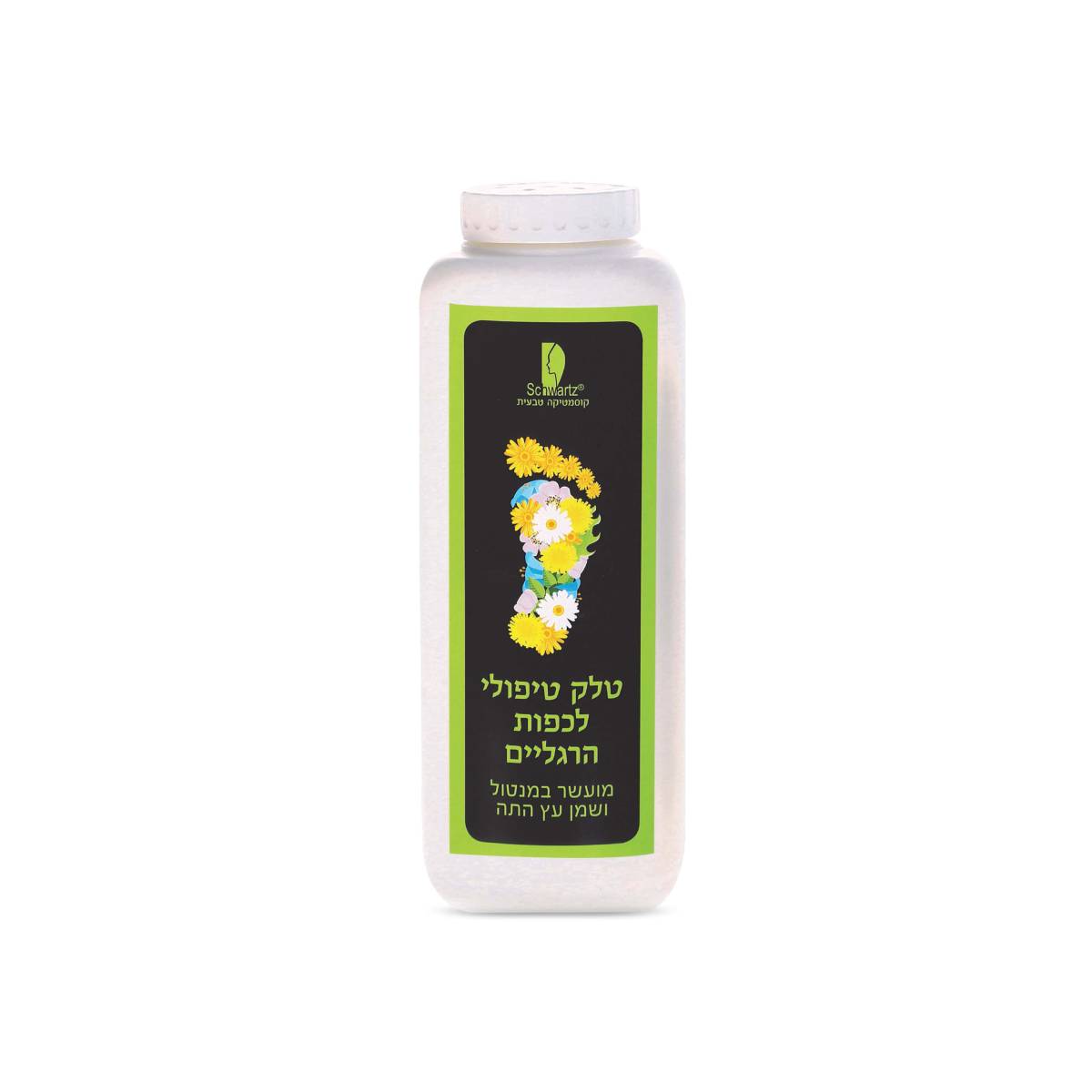 טלק טיפולי לכפות הרגליים מועשר במנטול ושמן עץ התה להרגעה ורענון מיידי. משאיר את העור רך ונעים גם לאחר שעות ארוכות בנעליים. מומלץ במיוחד לחיילים ולוחמים הזקוקים לטיפול יומיומי יעיל בכפות הרגליים.
